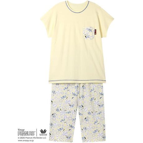 【PEANUTS×ワコール】1950年に新聞コミックとしてスタートした「PEANUTS」とワコールがコラボレーション。世界中で愛されるスヌーピーや個性豊かな仲間たちのデザインでおうち時間を楽しんで。【パジャマ(3分袖8分丈パンツ)】・本体に、暑い季節にここちよいシャリ感のある強撚糸を用いた綿100%の天竺素材を使用・ボトムと胸ポケットには、夏をイメージした浮輪やビーチボールとスヌーピーを組み合わせたプリント・トップスのネックと裾まわりのステッチは異なる色使いで、遊び心をプラス【サイズ詳細】M:身幅53.5cm 着丈65.0cm 身丈67.0cm ボトム脇丈80.0cm 裾まわり53.0cm ウエスト58.0cm ヒップ109.5cm 股下(レングス)49.5cmL:身幅57.5cm 着丈65.0cm 身丈67.5cm ボトム脇丈80.5cm 裾まわり55.0cm ウエスト63.0cm ヒップ113.5cm 股下(レングス)49.0cmLL:身幅61.5cm 着丈66.0cm 身丈68.5cm ボトム脇丈81.0cm 裾まわり58.0cm ウエスト68.0cm ヒップ118.5cm 股下(レングス)49.0cm※出来上がり寸法を表示しております※アイテムによって柄の出方が異なりますのでご了承ください。
