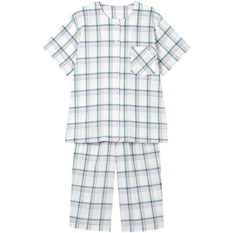 【パジャマ(5分袖7分丈パンツ)】・縦糸・横糸にポリウレタン糸を入れて織ることで、表面に凹凸をつけた、肌ばなれのよい涼しげな綿混ローン素材を使用・繊維長の長い超長綿を使用した上質な風合い・肩にゆとりをもたせて、腕まわりを動きやすく・ウエストゴムを2本使っているので、おなかまわりをしめつけにくい※長袖タイプもございます。【サイズ詳細】M:身幅53.0cm 着丈66.5cm 身丈69.5cm 肩幅46.0cm 袖丈20.0cm ボトム脇丈73.0cm 裾まわり46.5cm ウエスト60.0cm ヒップ105.0cm 股下(レングス)44.5cmL:身幅57.0cm 着丈66.5cm 身丈70.0cm 肩幅47.5cm 袖丈20.0cm ボトム脇丈73.5cm 裾まわり48.5cm ウエスト65.0cm ヒップ109.0cm 股下(レングス)44.0cm※出来上がり寸法を表示しております※アイテムによって柄の出方が異なりますのでご了承ください。【ワコール 睡眠科学】“眠る時間を、夢の時間に”睡眠が豊かになれば、毎日の暮らしはもっと活力に満ちたものになる。“眠る時間を、夢の時間に”をコンセプトに、パジャマをはじめ睡眠アイテムを幅広くそろえ、喜びあふれる明日へと導きます。