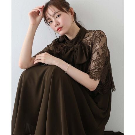 シアーな透け感は保ちつつ、あえて首元はハイネックに仕上げたことで露出を抑えて上品でクラシカルなイメージに仕上げました。