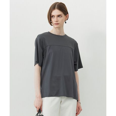 ■デザイン品のある光沢感が特徴のサテンジャージー素材とスムース素材を組み合わせたTブラウスです。同色コンビにすることで、落ちついた印象ながらこなれ感をプラス。カジュアルにもきれい目にも合わせやすくON/OFF活躍します。