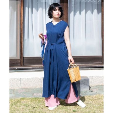 【カヤ】菊薫る長丈ノースリーブワンピース