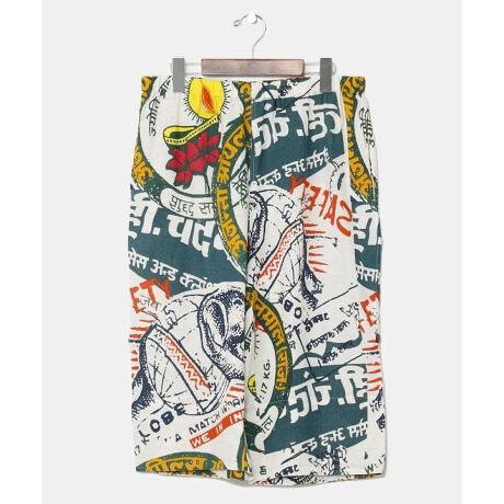 日本のステテコと世界各国の柄を融合したハーフパンツ。涼やかで肌触りの良いインド綿を使用し、さらっと快適に過ごせる一枚。両脇と後ろには便利なポケット付き。裾にタブが付いており、ロールアップすることでサイズの調整もできる。ユニセックスで楽しめる。