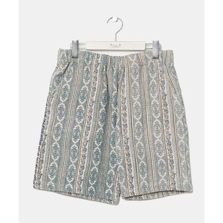 ざっくり織られたコットンレーヨンの素材が涼し気なメンズハーフパンツ。ハイビスカスをストライプ状にあしらい、伝統的なアロハシャツのモチーフを取り入れた柄。ヴィンテージ感漂う色味でリラックス感のあるデザイン。シャツとのセットアップ着用もおすすめ。