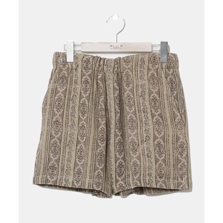 ざっくり織られたコットンレーヨンの素材が涼し気なハーフパンツ。ハイビスカスをストライプ状にあしらい、伝統的なアロハシャツのモチーフを取り入れた柄。ヴィンテージ感漂う色味でリラックス感のあるデザイン。シャツとのセットアップ着用もおすすめ。透け防止の裏地付き。
