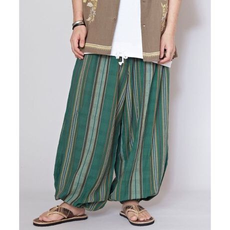 [型番:IMC-5205-2025]肌触りの良いインド綿のメンズパンツ。ピリッとスパイシーな日常を彩る、南インドの鮮やかな世界観を表現。着る度に肌に馴染み、素朴で愛着沸く一枚。裾にゴムが入ったサルエルパンツ。
