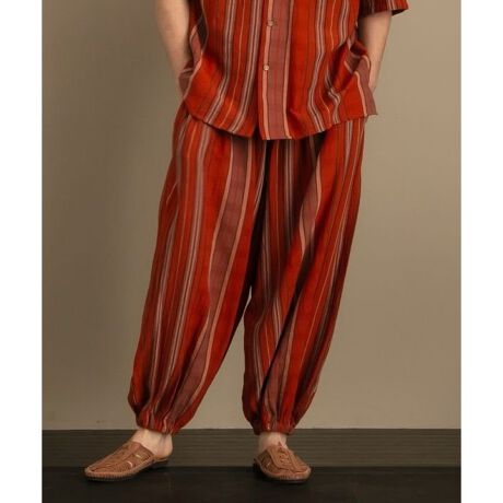 [型番:IMC-5205-2025]肌触りの良いインド綿のメンズパンツ。ピリッとスパイシーな日常を彩る、南インドの鮮やかな世界観を表現。着る度に肌に馴染み、素朴で愛着沸く一枚。裾にゴムが入ったサルエルパンツ。