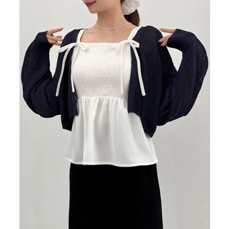 透かし編みニットボレロ+リボンキャミset