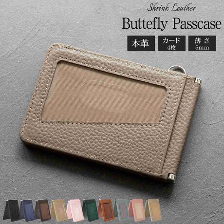 パスケース 二つ折り 4面 極薄 カード最大7枚 バタフライ式 薄い