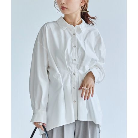 ゆとりのあるサイズ感ながらウエストにタックを入れることで立体感を演出し、スタイルアップ効果を実現。