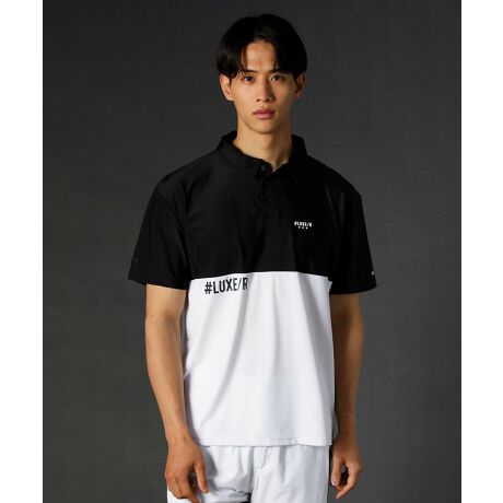 袖や身頃、背中に大小さまざまな英字プリントを配し、どの角度から見ても目を引くデザインに仕上げました。左サイドに施した蛍光グリーンのブランドピスネームが遊び心をプラス。また、ゴルフウェアとしても着用できるポロシャツデザインとなっており、高いストレッチ性のある素材なので大きなスウィングもスムーズに行えるのがポイントです。