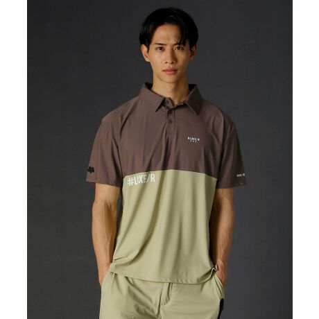 袖や身頃、背中に大小さまざまな英字プリントを配し、どの角度から見ても目を引くデザインに仕上げました。左サイドに施した蛍光グリーンのブランドピスネームが遊び心をプラス。また、ゴルフウェアとしても着用できるポロシャツデザインとなっており、高いストレッチ性のある素材なので大きなスウィングもスムーズに行えるのがポイントです。