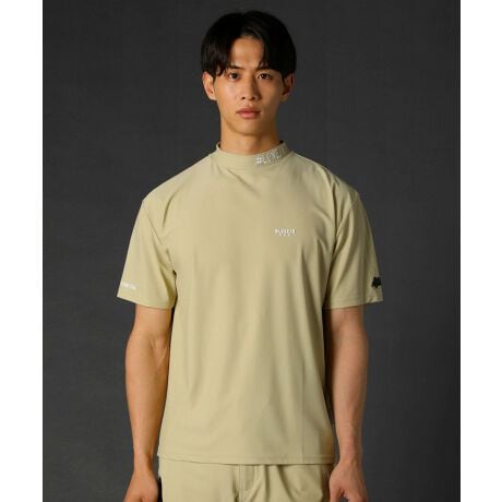 ゴルフのドレスコードに適したハイネックデザイン。ネック部分とバックに大胆なロゴを入れており、華やかさとインパクトを与えます。さらに胸元と袖には小さく英字プリントを施し、さりげないアクセントをプラスしました。