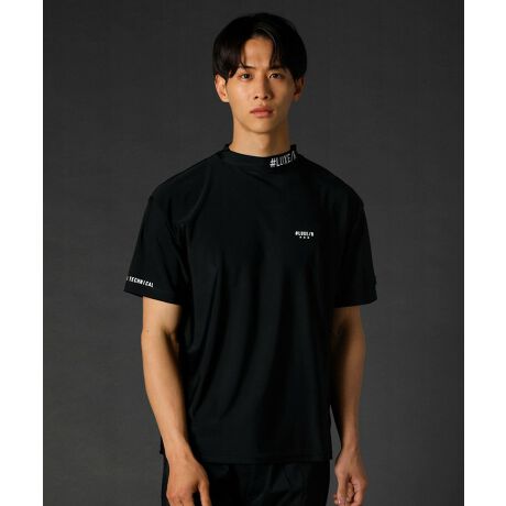 ゴルフのドレスコードに適したハイネックデザイン。ネック部分とバックに大胆なロゴを入れており、華やかさとインパクトを与えます。さらに胸元と袖には小さく英字プリントを施し、さりげないアクセントをプラスしました。