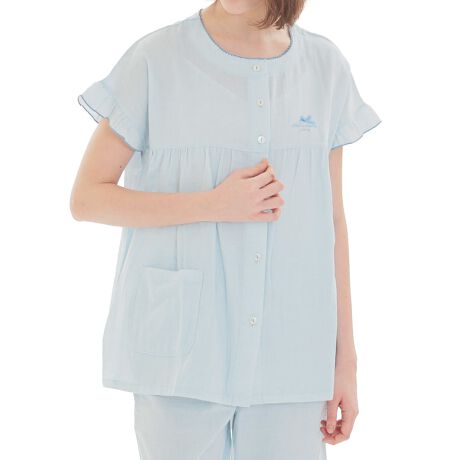 フレンチスリーブの半袖前開きパジャマ。