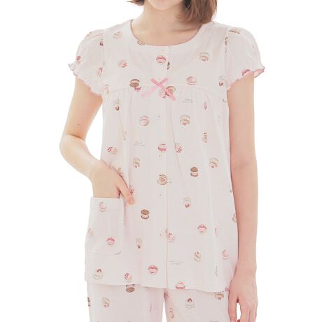 甘すぎないビターな色合いで描いた、幼さを感じさせないスイーツ柄のパジャマ。