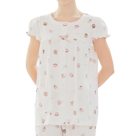 甘すぎないビターな色合いで描いた、幼さを感じさせないスイーツ柄のパジャマ。