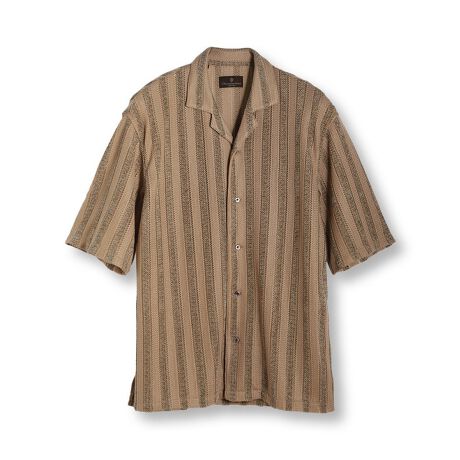 無地ライクなペイズリー柄のジャカードや、モールのような意匠糸と涼しげな透かし柄を組み合わせた生地など、遊び心のある素材をリラックス感のあるオーバーサイズシルエットで仕上げたリゾート感あふれる夏用シャツ。