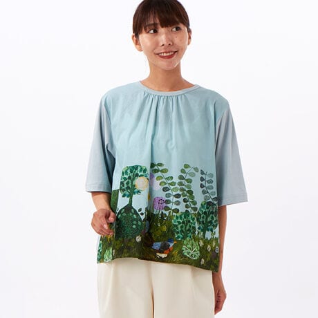 SUPER HAKKA×サクマユウコ 天竺×ローン「ある晴れた日に」プリントブラウス