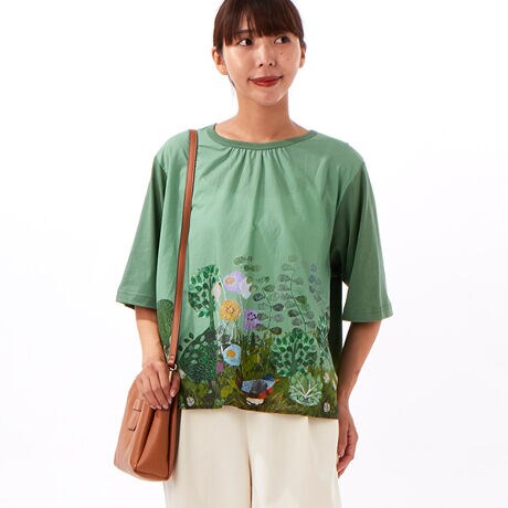 SUPER HAKKA×サクマユウコ 天竺×ローン「ある晴れた日に」プリントブラウス