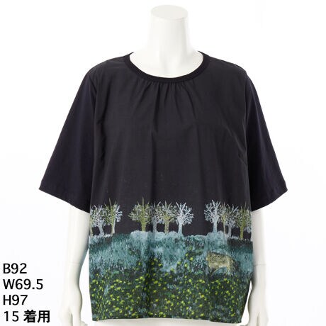 [15〜19号]SUPER HAKKA×サクマユウコ 天竺×ローン「オオカミ」プリントブラウス
