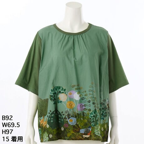 [15〜19号]SUPER HAKKA×サクマユウコ 天竺×ローン「ある晴れた日に」プリントブラウス
