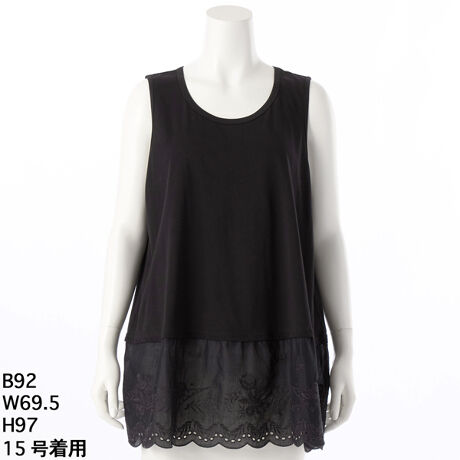 [15〜19号]30/-天竺+エンブロイダリーレースタンクトップチュニック