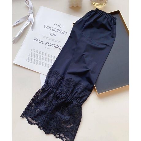 手首まわりには立体的なレースが贅沢にあしらわれており、エレガントなデザイン。腕部分はすっきりとしたシルエットで、フィット感がありながらも窮屈さを感じさせません。手首部分がキュッとなっていて華奢見えします。全体のバランスがよく、アクセサリー感覚で使えるのも魅力です。