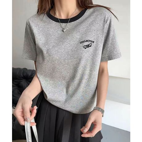 ネックの配色デザインが目を引く、スポーティーなムードのリンガーネックTシャツ。胸元の小さいロゴプリントがさりげなくカジュアルで、こなれ感をプラスしてくれます。