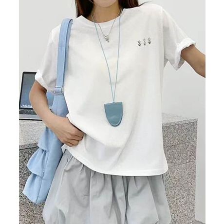 さりげないロゴがアクセントになった、日常使いにぴったりなベーシックTシャツ。ゆったりとしたシルエットと軽やかな印象で、デイリーコーデにぴったりの一枚です。