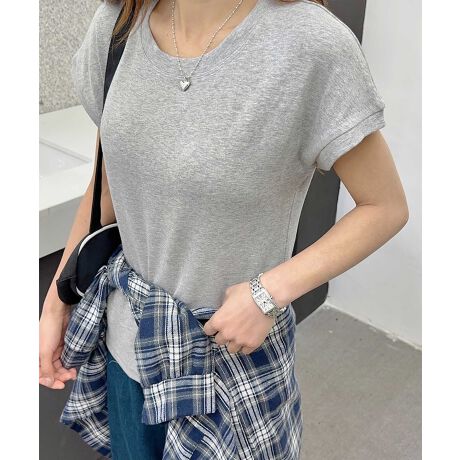 ゆとりのあるスタンダードなシルエットで、どんな体型にも自然にフィット。首まわりはスタンダードなクルーネックで、カジュアルからきれいめまで幅広く対応できます。フェミニンなフレンチスリーブでこなれ感があり華奢見えする一枚。