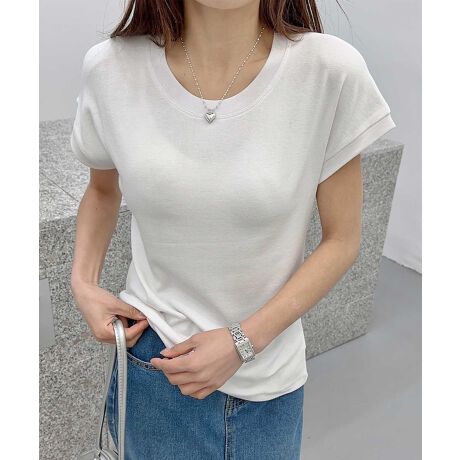 ゆとりのあるスタンダードなシルエットで、どんな体型にも自然にフィット。首まわりはスタンダードなクルーネックで、カジュアルからきれいめまで幅広く対応できます。フェミニンなフレンチスリーブでこなれ感があり華奢見えする一枚。