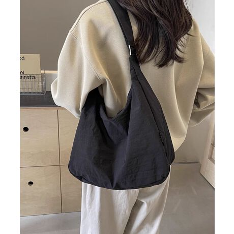 丸みを帯びたシルエットでベーシックな無地のワンショルダーバッグ。軽やかで柔らかな印象のフェミニンなアイテム。しっかりとした収納力でデイリーユースに最適な一品です。