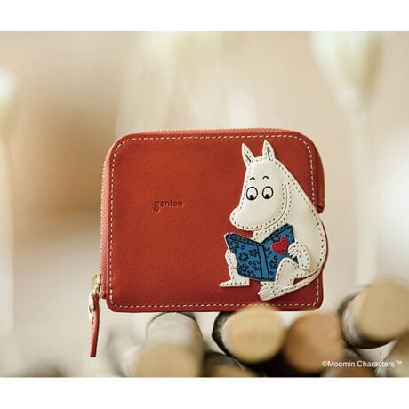 ムーミンが、ガールフレンドであるスノークのおじょうさんの日記をのぞき見してしまい、怒られる直前のアートをはみ出しカードケースに仕立てました。日記の柄もプリントで表現しています。カードは6枚入る仕様で、3辺にわたるファスナーで出し入れしやすさも自慢です。