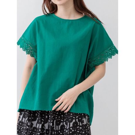 [型番:25410668139]繊細なレース袖で女性らしいデザインに仕上げたブラウス。ボディラインを拾わないゆとりあるシルエットでリラックス感のある着心地に。前後差をつけた裾のディテールもこなれ感をプラスします。軽やかな生地の風合いでさらりと着ることができ、デイリーユースにも活躍してくれるアイテムです。Hare no hi/ハレノヒ