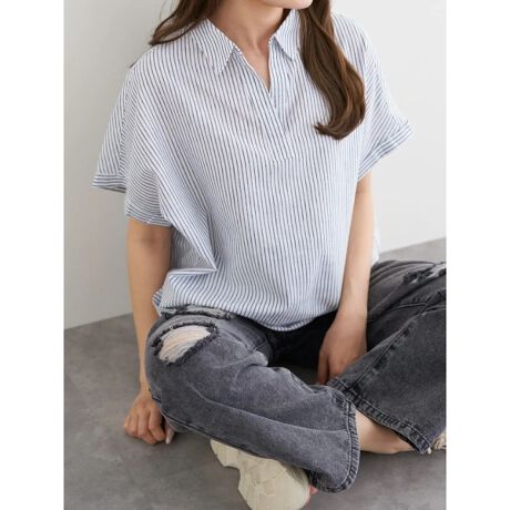・顔まわりをすっきり見せる、スキッパー襟。