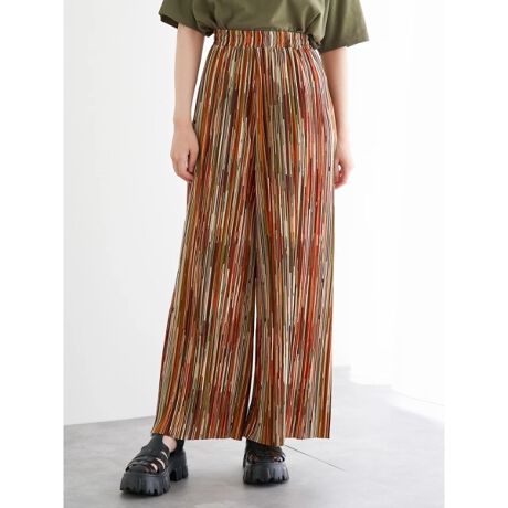 スタイリングのアクセントに映えるアソート柄プリーツスカンツ
