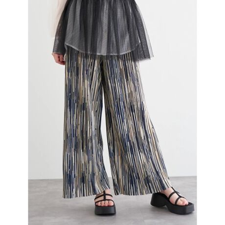スタイリングのアクセントに映えるアソート柄プリーツスカンツ
