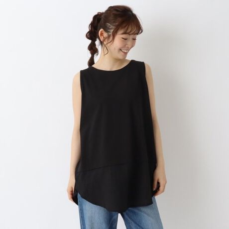 裾にシアー感のある布帛生地をドッキングした異素材タンクトップ。