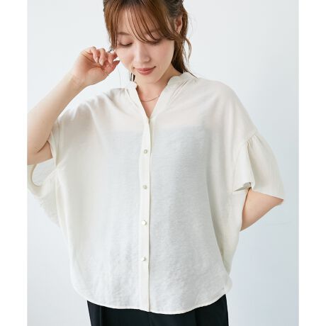 素材感:やや透け感ある涼しげな素材。シワになり辛いのも嬉しいポイント。