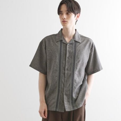 素材感のある生地を使用したオープンカラーの半袖シャツ。