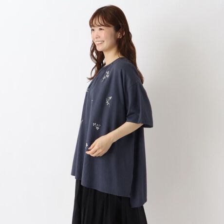 私は普段3Lなのですが、このブラウスのサイズは「02(M)のみ。諦めかけてサイズを見たら、「B144cm」となっていたので、一か八か、ダメなら娘にあげようと思い、まるで賭けのような気持ちで購入しました。サイズ表記からすると着られるはずだけど、もし着られたとしても、ちょっと不自然に見えたりするだろうか、と思いましたが、全く無理なく着ることができました。チャコールグレーの色も落ち着いていて抵抗なく着られて、刺繍も可愛らしいです。