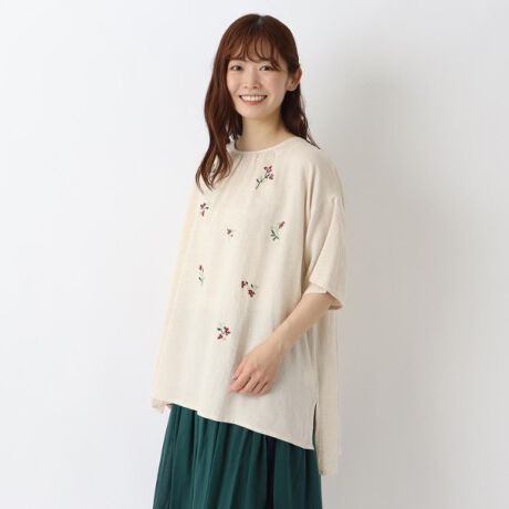 マルイウェブチャネル   /   ワンズテラス   /   トップス   /   ブラウス   /   フラワー刺繍 5分袖チュニックシャツ
