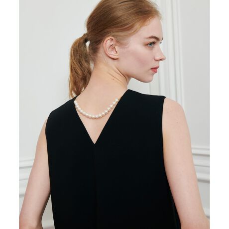 付属のパールネックレスを衿ぐりの前後どちらにもお好みで装着して頂けます。