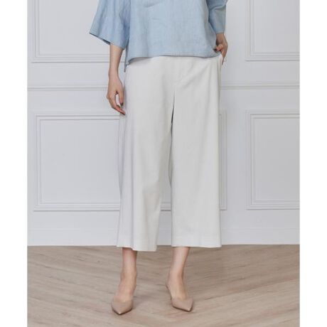 ■デザインリネン混で清涼感のある素材を使用したワイドクロップトパンツ。ウエスト周りをすっきりと見せつつ、ゴム仕様や素材のストレッチ性で穿き心地の良さに配慮しました。程よい分量感とシンプルなディテールで汎用性の高いデザインに仕上げました。ドライでサラッとしたタッチも嬉しいポイント。夏をきれいめに乗り切れるパンツです。■素材リネン混の清涼感が特徴のストレッチ素材。縦糸に綿麻、横糸にストレッチ糸(T400)を使用したしなやかな伸びと、キックバック性がある、着心地の良い素材です。変形糸(シック&シン糸)を使用する事で、ナチュラルな凹凸のある表面を表現しています。また、麻の風合いを楽しみつつ、比較的シワになりにくい素材感もポイントです。綿と麻の天然素材らしい、ドライでサラッとしたタッチが盛夏でも快適な着心地を叶える素材です。・キナリのみ裏地あり・後ろウエストゴム仕様・ポケットあり・水洗い可・裏地あり同素材のジレ品番:7052141032■サンプル撮影商品画像の商品はサンプルです。実際の商品とはサイズや色味、素材、デザイン等の仕様が若干変更になる場合がございます。■カラーについては、可能な限り実際の商品に近いカラーで撮影をおこなっておりますが、照明の関係により実際の製品とは色味が違って見える場合があります。またパソコン・スマートフォンなどの環境により、若干製品と画像のカラーが異なる場合もございます。現物と画像のカラー差異については返品理由となりませんので、予めご了承ください。■サイズ表記はあくまで目安となります。