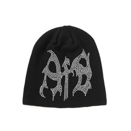 フロントにラインストーンで表現したロゴを飾ったシングルニットビーニー。