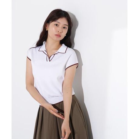 配色の効いたラメラインで抜け感と新鮮なバイカラーに拘ったポロニット。シンプルなアイテムながら、フレンチスリーブとスキッパーの首元で抜け感をプラス。袖はやさしいフレンチスリーブデザインで、気になる二の腕をカバーします。スカートにもパンツにも着回せるデザインです。<素材>シャリ感のあるベーシックな糸を使用。プレーンな見え方でもドライタッチでサラッと着られる素材です。<詳細>仕様・開閉なし裏地・なし透け感・なし / 光沢・なし / 伸縮性・なし生地の厚さ・普通※モデルの着用画像の場合、光の当たり具合により、実際の色味と異なって見えることがございます。色味は、商品単体の画像をご参照ください。