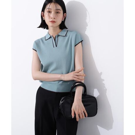 配色の効いたラメラインで抜け感と新鮮なバイカラーに拘ったポロニット。シンプルなアイテムながら、フレンチスリーブとスキッパーの首元で抜け感をプラス。袖はやさしいフレンチスリーブデザインで、気になる二の腕をカバーします。スカートにもパンツにも着回せるデザインです。<素材>シャリ感のあるベーシックな糸を使用。プレーンな見え方でもドライタッチでサラッと着られる素材です。<詳細>仕様・開閉なし裏地・なし透け感・なし / 光沢・なし / 伸縮性・なし生地の厚さ・普通※モデルの着用画像の場合、光の当たり具合により、実際の色味と異なって見えることがございます。色味は、商品単体の画像をご参照ください。