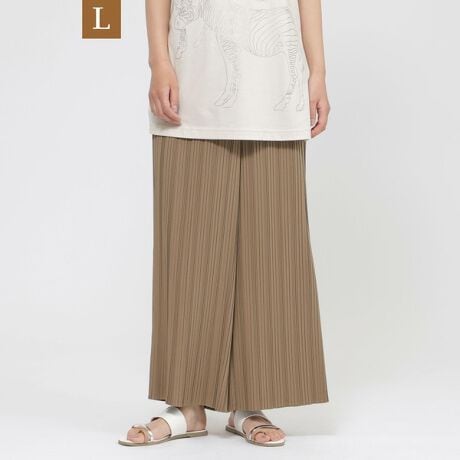 【L】【ウォッシャブル】デシンプリーツワイドパンツ