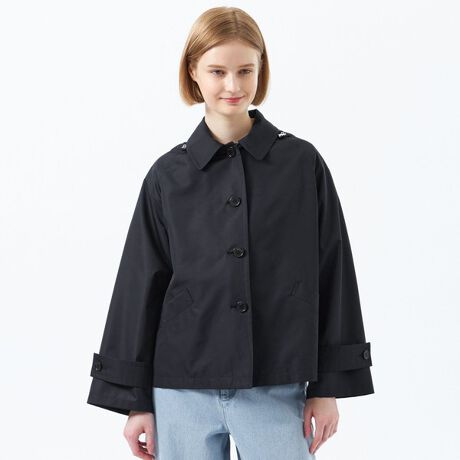 レインシーズンに向けたショート丈のフード付デザイン。はっ水機能付なので、雨の日のお出かけにピッタリ。フードは取り外し可能なので、コーディネートに合わせて雰囲を変えられます。