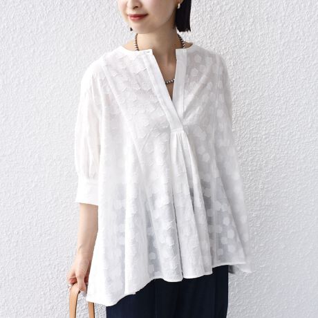 表面感のあるジャカード生地が可愛いブラウス